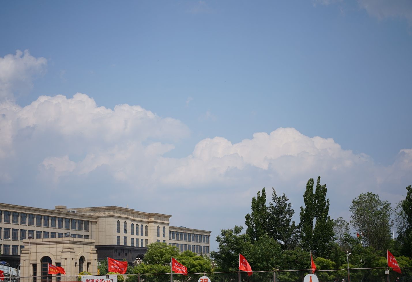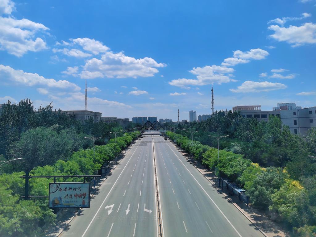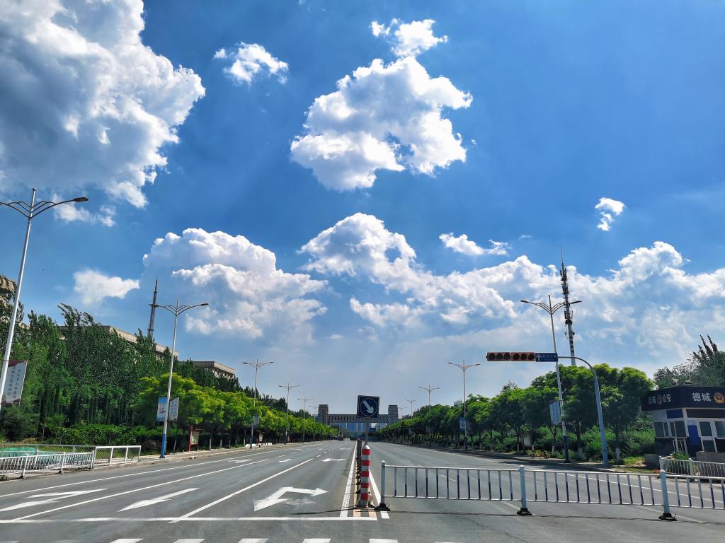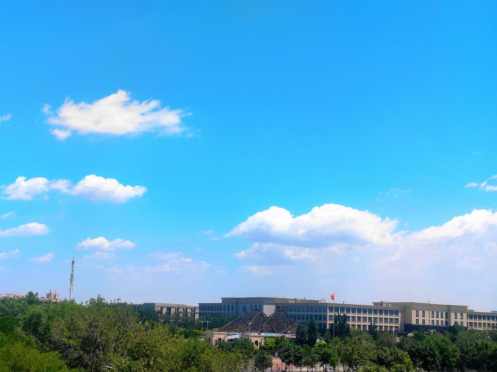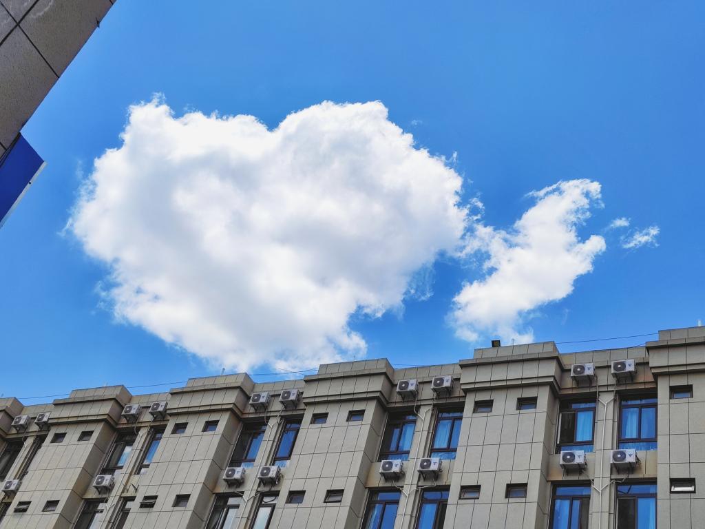 眺望远方,几抹舒软的云朵镶嵌其中