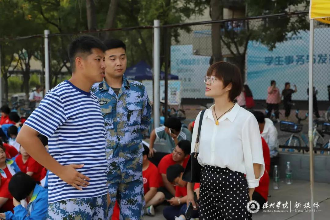 一早,孙老师来到了新生军训的场地,观看新生军训,并与教官沟通一些有关军训的注意事项。