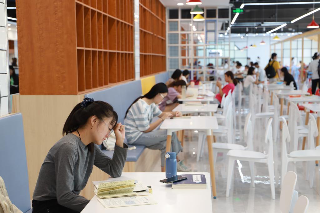 在学校图书馆、教学楼、教室里、走廊里、草坪上看到许多学生正在认真学习,学习氛围很浓,漫步校园随处可见朗读、背诵、学习的学生。