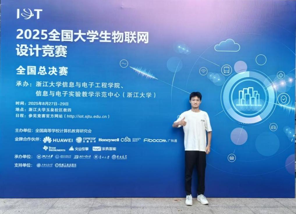 近日,2025年全国大学生物联网设计竞赛全国总决赛在浙江大学举行。亚博官网由董文会老师指导的任逢瑜、贾方龙、赵誉和巩佳琪团队首次参赛即获得全国总决赛一等奖1项。