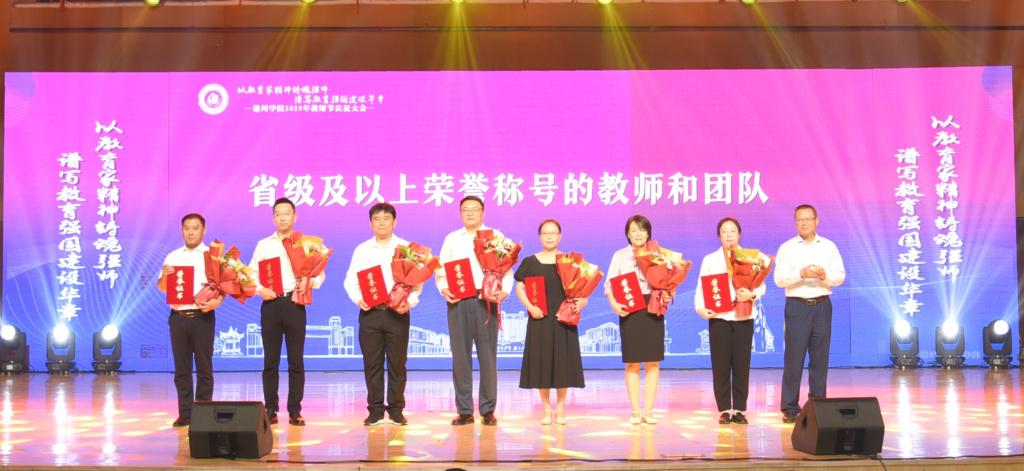表彰会以《老师我想你》等歌曲的深情演唱共同重温教育情怀,诠释精神传承;在《我和我的祖国》的激昂歌声中圆满落幕。