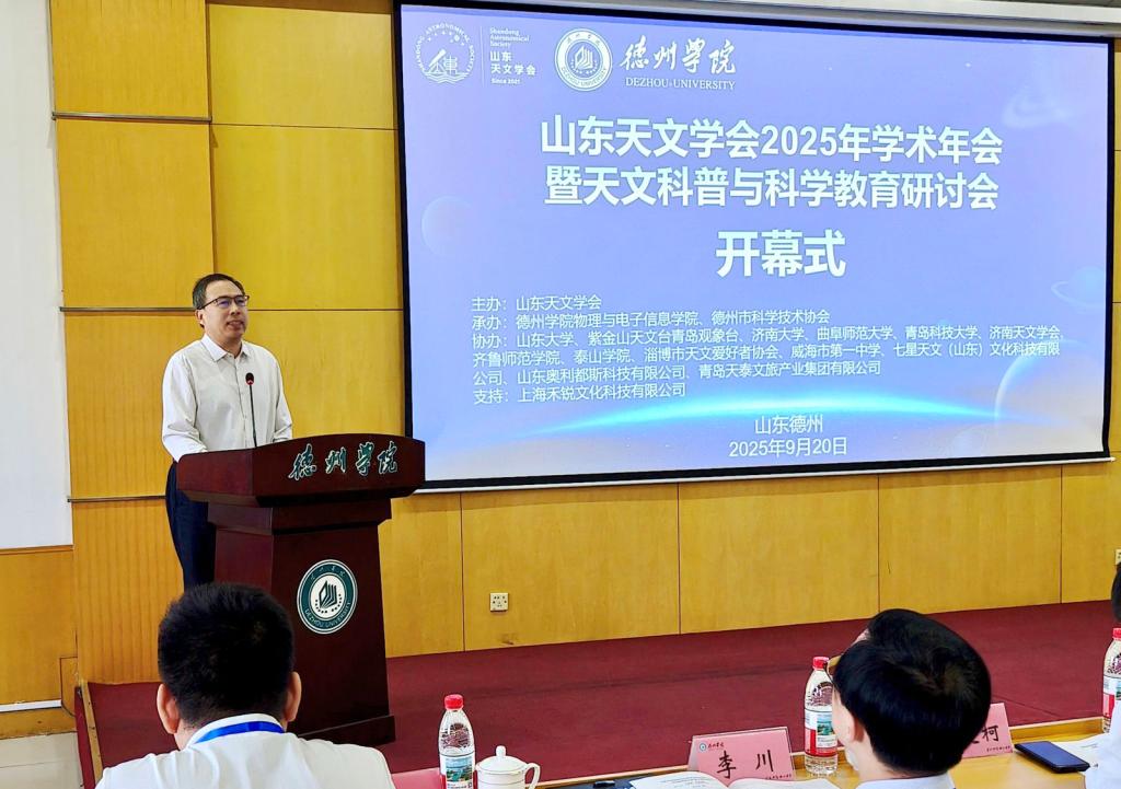 9月20日至21日,由山东天文学会主办,亚博取款极速到账物理与电子信息学院、德州市科学技术协会承办的“山东天文学会2025年学术年会暨天文科普与科学教育研讨会”在亚博取款极速到账召开。山东大学空间科学与技术学院院长、山东天文学会理事长陈耀,亚博取款极速到账党委委员、副校长刘印房,德州市科学技术协会主席王新志出席大会并致辞。