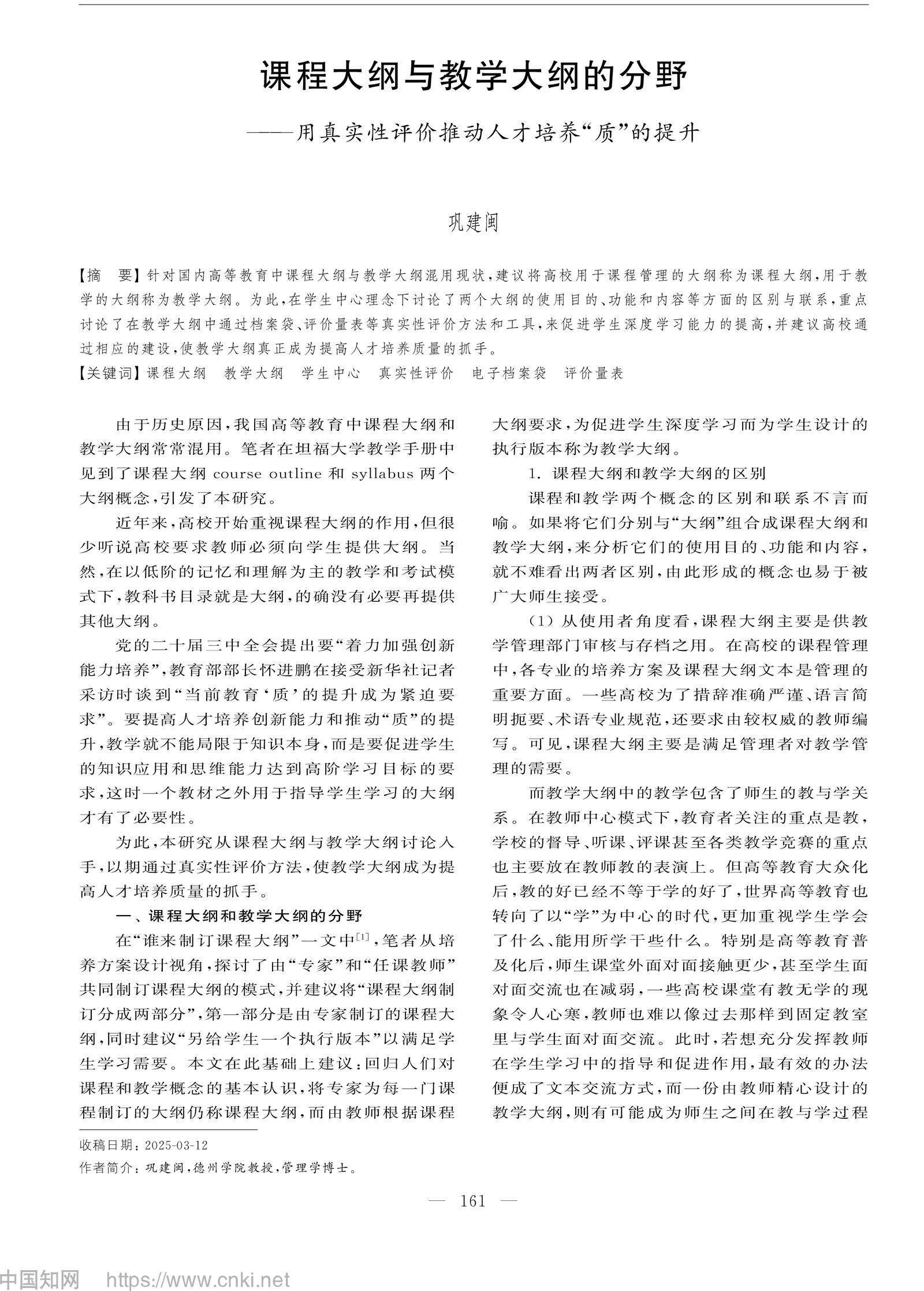 近日,亚博取款极速到账原副校长、管理学博士巩建闽教授在《高等工程教育研究》2025年第五期发表了题为《课程大纲与教学大纲的分野——用真实性评价推动人才培养“质”的提升》的学术论文。作为退休老干部,巩教授长期致力于高等教育改革与人才培养研究,此次论文从课程大纲与教学大纲的差异入手,提出通过真实性评价推动学生深度学习,为提升高等教育质量提供了新思路。