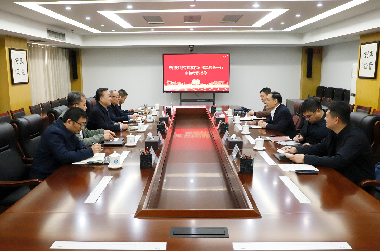 10月30日,菏泽学院党委副书记、校长孙建昌一行4人来校考察交流。亚博官网党委书记吴君,党委副书记、校长赵长林在学校八楼会客室热情会见孙建昌一行,双方就深化校际合作、共享发展经验等方面进行了友好会谈。