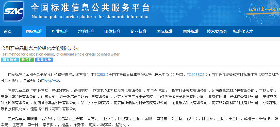 作为我国首个针对金刚石单晶位错密度测试的国家标准,本标准的发布填补了该领域标准体系的空白。