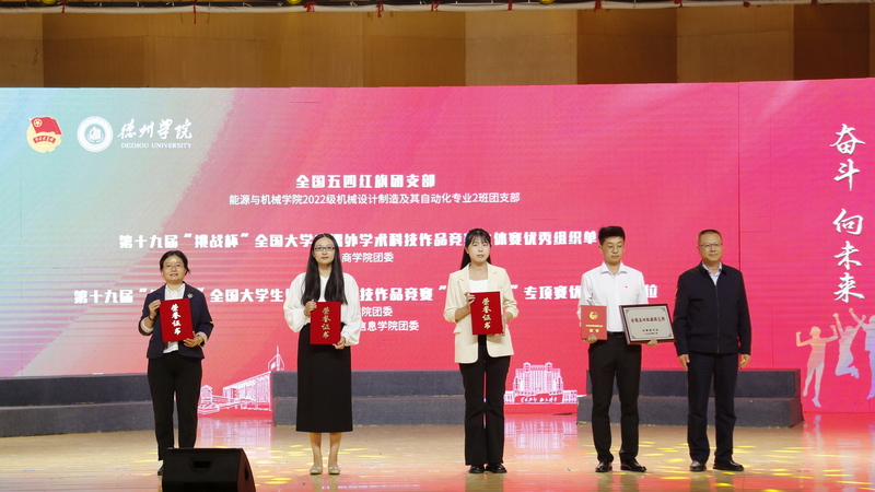 在“青春讲述人”环节,共青团德城区委书记李欣,第十九届“挑战杯”全国大学生课外学术科技作品竞赛国家三等奖指导教师、商学院教师韩旭,全国五四红旗团支部——能源与机械学院2022级机械设计制造及其自动化专业2班团支部副书记、班长刘铠嘉依次发言,分享了校地共建、科创育人、支部建设的青春故事。