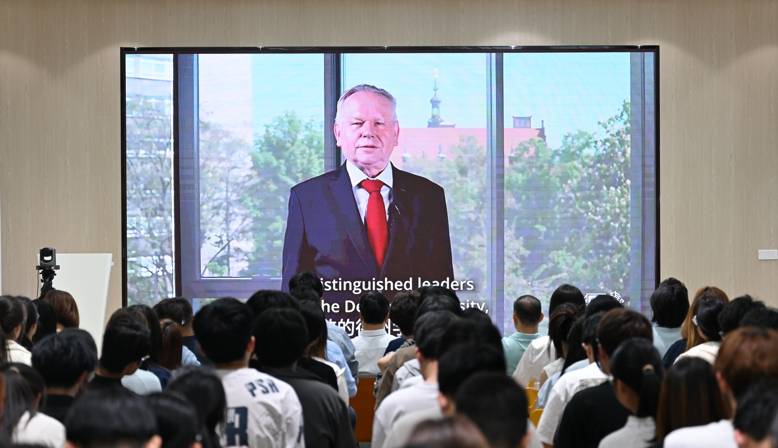 宣传部、学生工作处、教务处、国际交流合作处等相关部门负责人,各学院2025届毕业生、在校生代表参加活动。