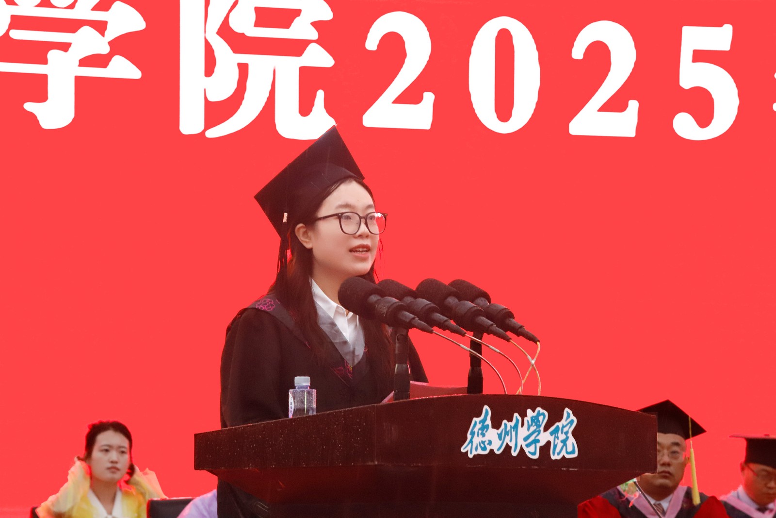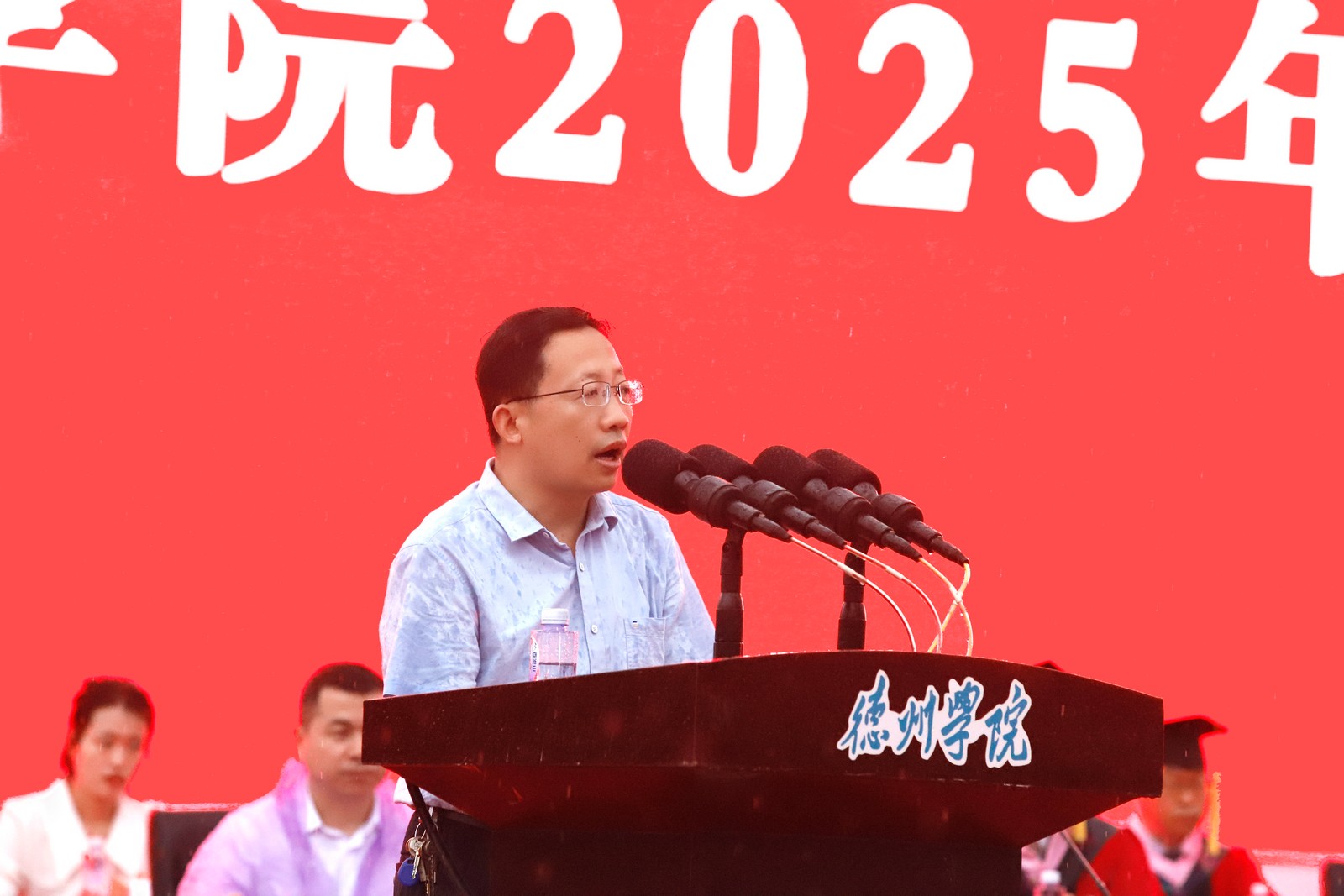 毕业生家长代表、美术学院刘格泽父亲刘志勇发言,叮嘱同学们要常怀感恩之心,传承德院精神,勇敢追梦,在实现个人价值的同时,不忘用所学所长服务社会、报效祖国,用智慧和汗水书写属于自己的精彩篇章。