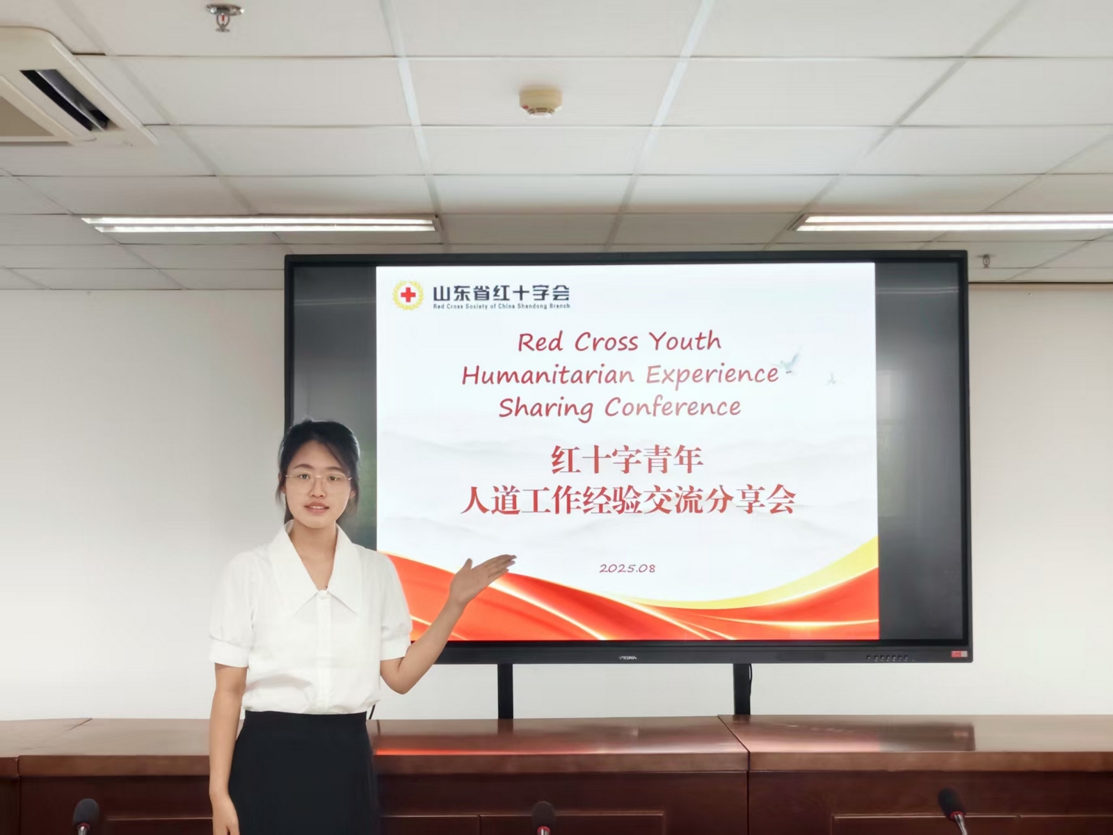 根据商务部2025年援外培训工作计划和中国红十字总会“一带一路”沿线国家青年领导力及人道工作研修班课程安排,8月13日,山东省红十字会在济南举办红十字青年人道工作经验交流分享会。法学与公共管理学院学生张莹莹作为受邀学生代表参会并作交流发言。