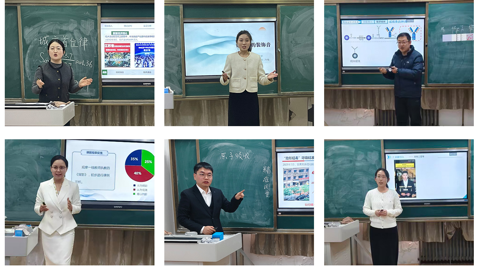 本次活动有15名教师参赛,按文、理、工科三组同步进行,每组评审专家由3名校内教学竞赛获奖教师担任。活动按照山东省青年教师教学比赛标准,设立“教学设计”“课堂教学”“教学反思”三个评审环节。参赛教师需提前准备4个节段的教学设计及PPT。现场比赛阶段,选手随机抽取其中一个教学节段,进行20分钟现场授课并完成2分钟教学反思陈述。评审专家结合教学设计、教学方法与课堂实施等方面进行专业点评,精准剖析了参赛教师在讲课逻辑、重难点把握、知识高阶性、课程思政融入及板书设计等方面存在的问题,引导参赛教师开展深度反思与持续改进,切实助力青年教师教学能力与备赛水平提升。