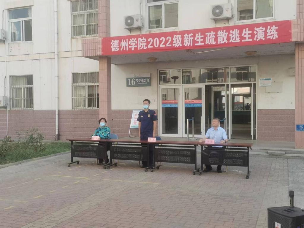 为提高新生安全防范意识和自防自救能力,9月28日下午,18个教学单位的部分新生代表参加了在14、15号公寓举行的应急疏散逃生演练和消防知识现场教育活动。学生处、保卫处负责人及德州市德城区消防救援大队大队长刘斌参加了活动。
