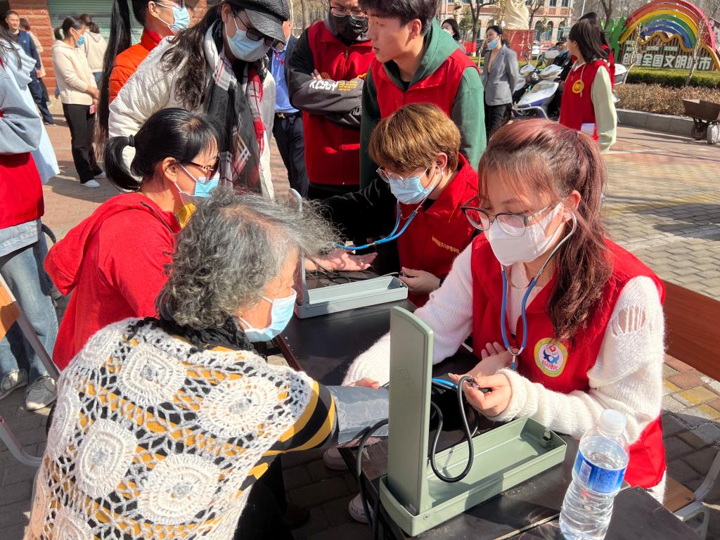 3月9日上午,医药与护理学院青年志愿者在萧何庄社区开展了“弘扬新时代雷锋精神,投身新征程志愿服务”社区健康宣讲义诊活动,医药与护理学院学生党员和南丁格尔志愿服务队全程参与。