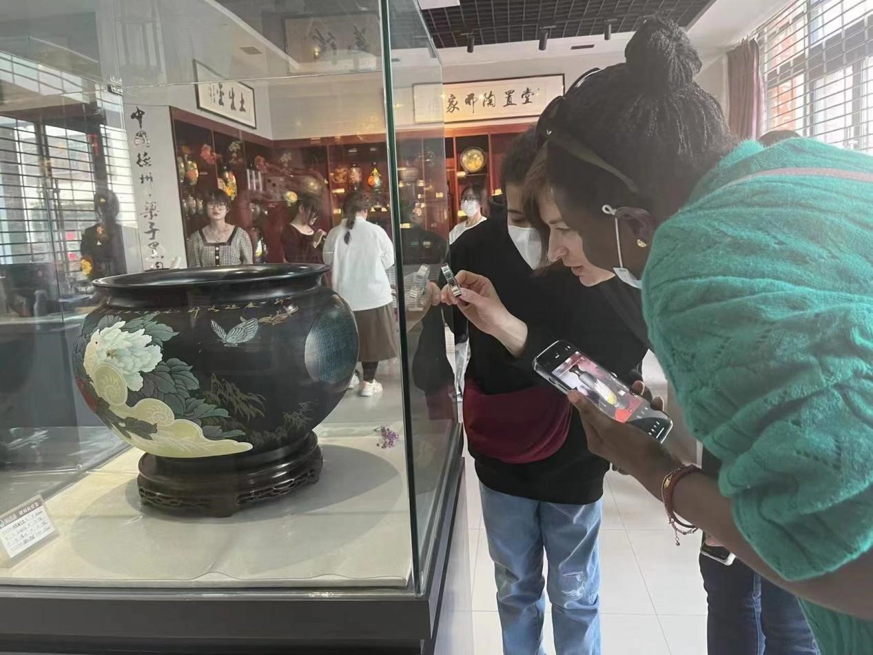 别尔哥罗德食品科学学院俄罗斯教师叶卡捷琳娜·弗拉基米罗夫娜惊叹于黑陶技艺如此灿烂,她说:“我刚来德州,自己对中国文化、历史一直很有兴趣,这是我第一次走进德州的博物馆,中华传统文化宛如璀璨星空的一颗明星,是世界文化遗产中不可或缺的一部分,以后有机会希望能够更多地走进博物馆、展览馆,深入学习德州本土文化,孔孟文化,中国文化。”俄罗斯教师米拉娃说:“学校每逢重要节日都会组织外籍教师体验中国传统文化活动,我的儿子大宝非常喜欢中国传统文化,每次我们都会参与其中。”