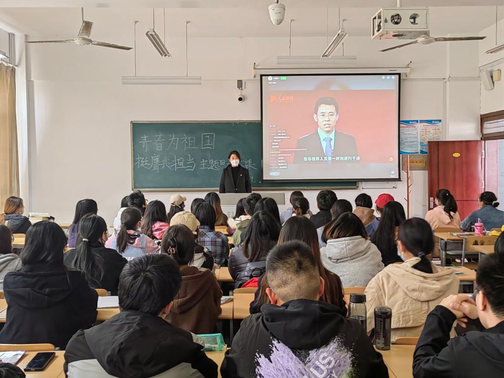 为深入贯彻落实习近平新时代中国特色社会主义思想,持续学习宣传贯彻党的二十大精神,3月23日下午,亚博官网组织师生观看由中央网信办网络传播局、教育部思想政治工作司指导开展的“青春为祖国 挺膺共担当”主题思政大课。聆听党的二十大代表、知名高校思政教师、优秀青年大学生等讲述新时代青年的理想与追求。直播邀请了嫦娥五号交会对接微波雷达主任设计师贺中琴,南京航空航天大学马克思主义学院徐川老师,清华大学博士刘迪波学长,中国共产党历史展览原讲解员纪洲丽等嘉宾讲授。