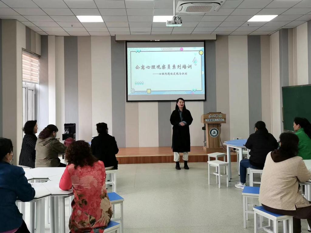 为进一步完善学生公寓管理网络,提升公寓楼长心理健康工作能力水平,3月31日,学校在心理健康教育与咨询中心开展“心理问题的发现与识别”专题培训,全体公寓楼长参加此次培训。