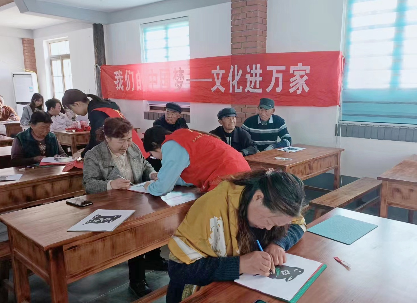 务队的20余名志愿者积极参与到文明实践活动中。广场上,身着红马甲的志愿者们在音乐声中熟练的摇着空竹,彩色的空竹随着音乐的节拍被抛向天空,感受非遗文化的魅力;讲解厅里,志愿者为老人们讲解运河的文化,传播运河的知识,观看美丽的运河风景;教室里,志愿者为老人讲解剪纸,带领老人们创作出生动的剪纸作品。