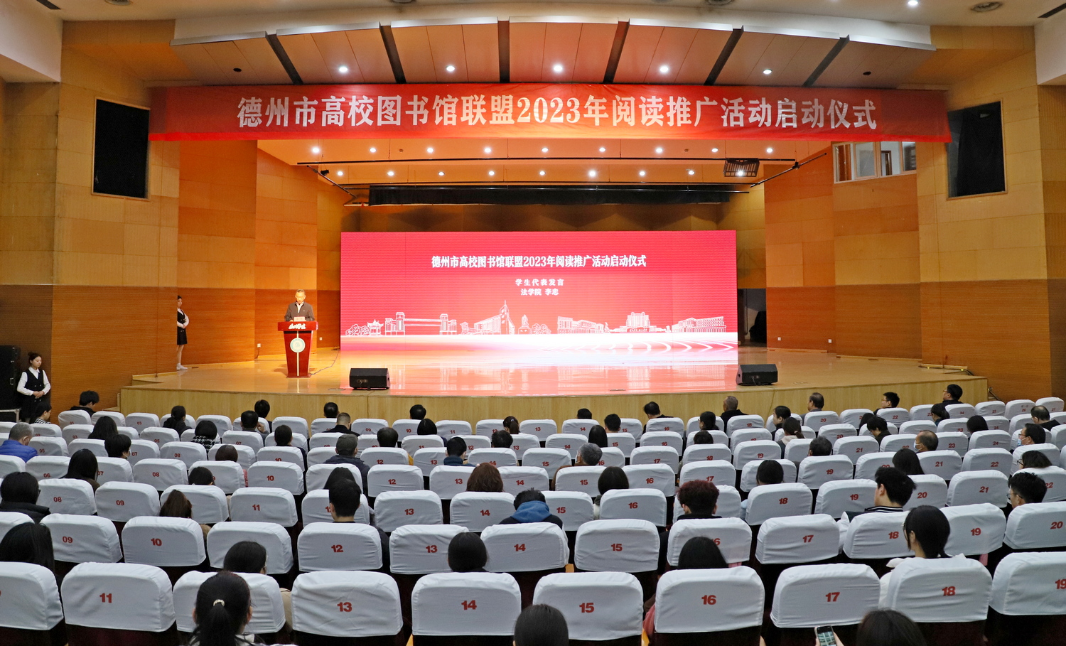 王来恩宣读《德州市高校图书馆联盟阅读推广倡议书》。他希望广大师生要养成多读书、读好书的习惯,积极参与线上线下阅读活动,亲近经典、效法先贤、学以致用,在阅读中体味人生、感悟生命、成就事业,书写不负时代的人生华章。