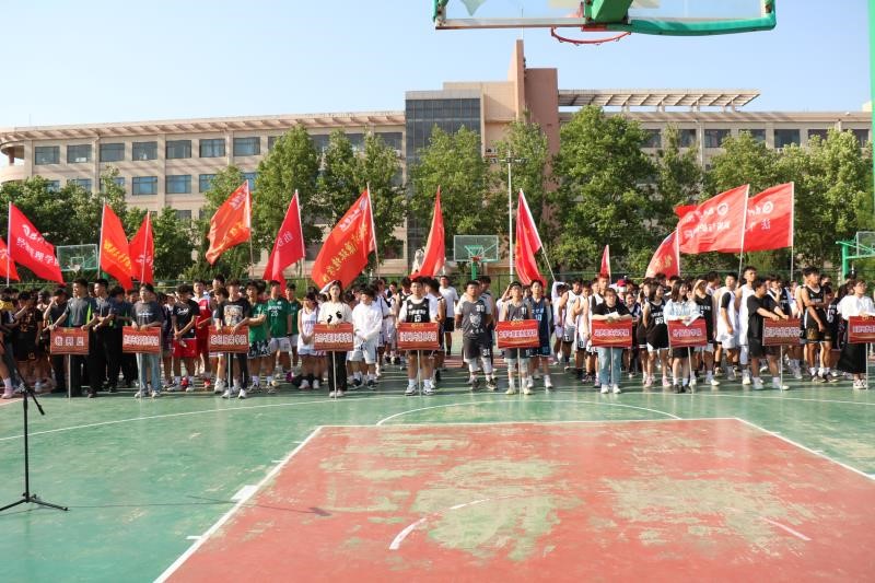 5月16日,学校“全民健身篮球联赛”开赛仪式在北篮球场举行。来自各学院的二十余支参赛队,运动员、裁判长代表等二百余人参加了开幕式。