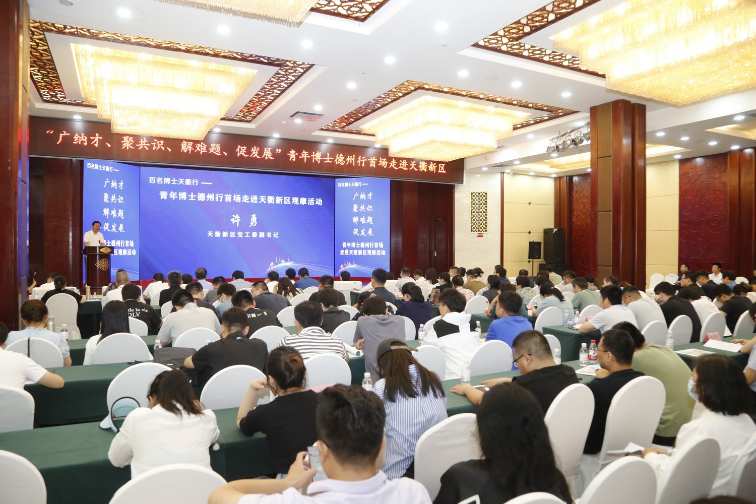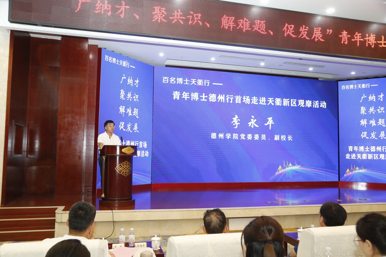 6月9日,亚博取款极速到账组织60余名博士代表参加德州市人力资源和社会保障局、德州天衢新区管理委员会主办的百名博士天衢行——“广纳才 聚共识 解难题 促发展”青年博士德州行首场走进天衢新区活动。德州市委组织部副部长、市人力资源和社会保障局局长郭洪霞,德州天衢新区党工委副书记许勇,德州市人力资源和社会保障局党组成员、副局长尚键,德州天衢新区党工委委员、党群工作部部长刘学武;齐鲁工业大学(山东省科学院)科研管理部副部长魏明志;亚博取款极速到账党委委员、副校长李永平出席。活动由德州天衢新区(德州经济技术开发区)党工委委员、管委会副主任申毅主持。