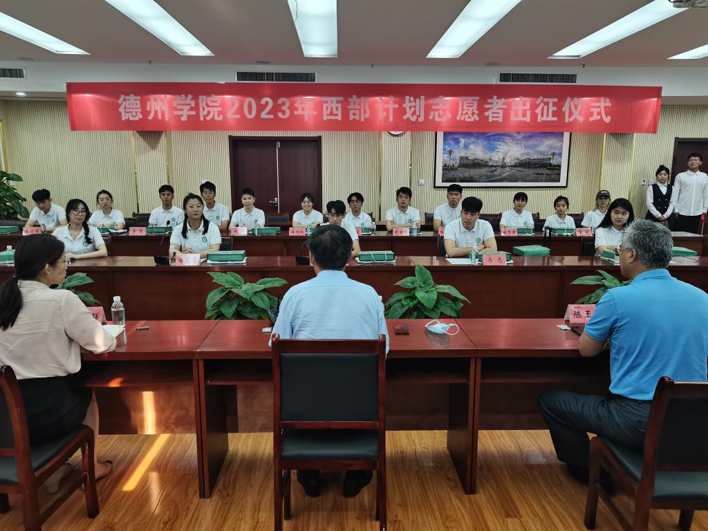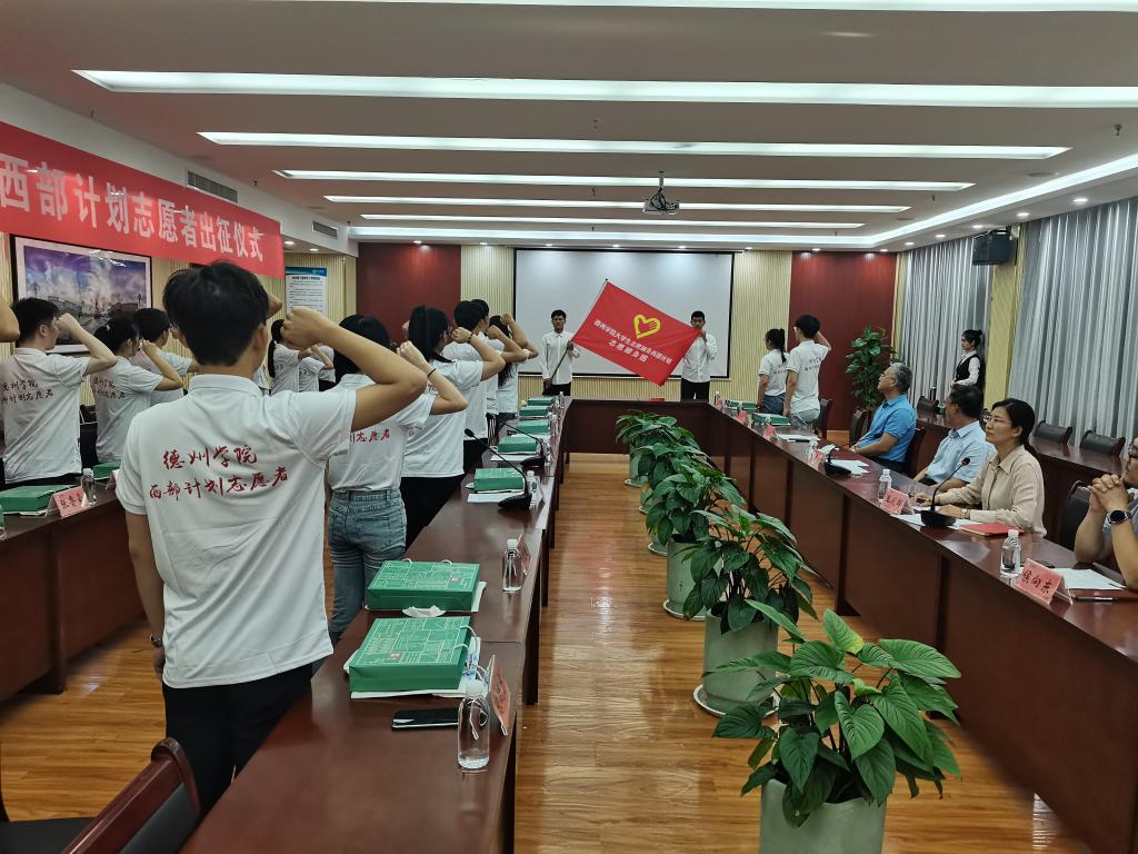 迟沂军向即将奔赴祖国各地开展志愿服务的西部计划志愿者致以良好的祝愿并提出三点希望。一是希望同学们牢记德院校训,始终铭记自己是一名德院学子,用青春和汗水展示德院学子踏实肯学、勤于实践、勇于创新的精神风貌,为母校争光添彩。二是希望同学们始终不忘初心,牢记“奉献、友爱、互助、进步”的志愿服务精神,将其内化于心,外化于行,在逐梦前行中扎根基层、服务社会。三是希望同学们勇于开拓创新。以青春才智赋能乡村振兴,将爱国情、强国志、报国行自觉融入建设社会主义现代化强国的新征程中。