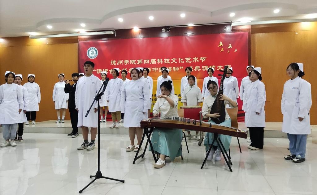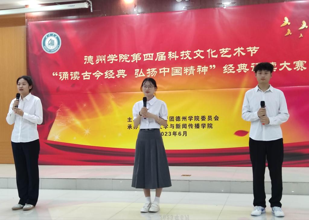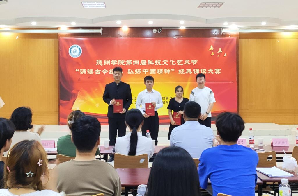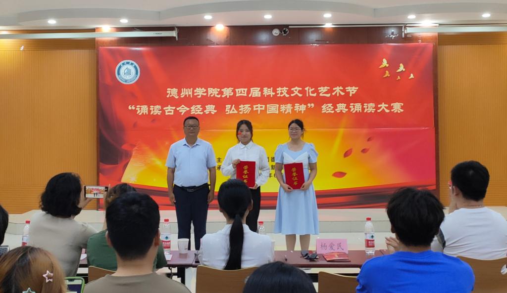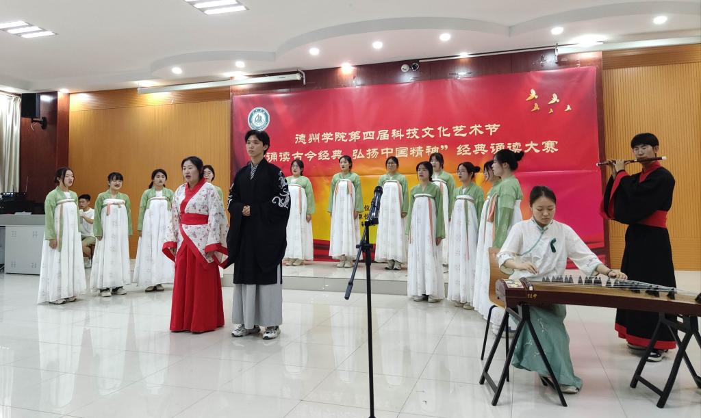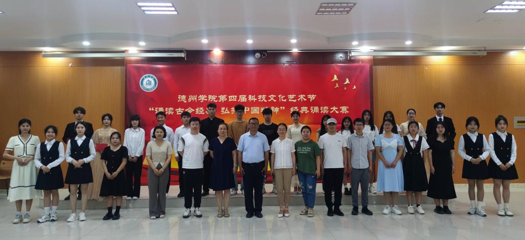 本次经典诵读大赛由校团委主办,文学与新闻传播学院承办,是亚博官网第四届科技文化艺术节的一项活动。德院师生从诗歌中学习中华文化,从历史中汲取精神力量,砥砺前行再出发。校团委相关负责人、文学与新闻传播学院班子成员、参演学院的师生代表参加了本次活动。