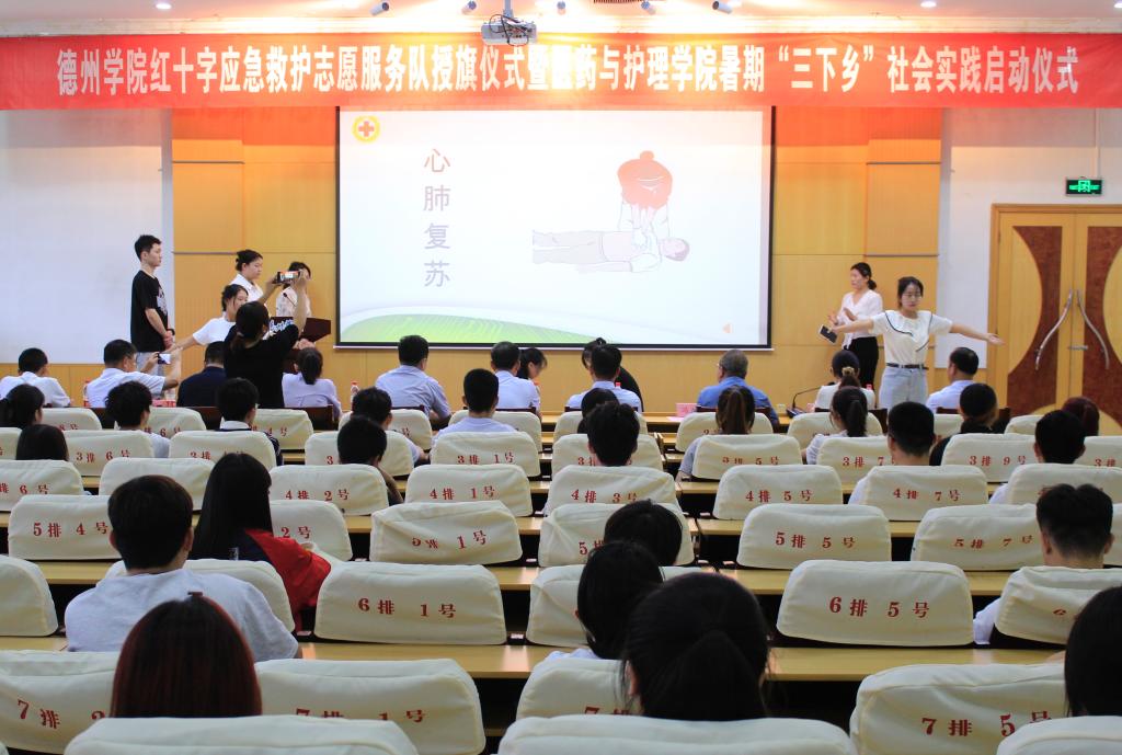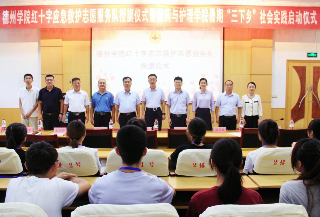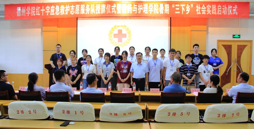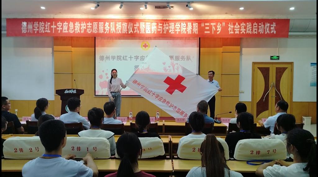 为弘扬“人道、博爱、奉献”的红十字精神和“奉献、友爱、互助、进步”的志愿服务精神,更好地推进暑期“三下乡”社会实践活动深入开展。7月6日下午,医药与护理学院于厚德楼四楼报告厅举办亚博取款极速到账红十字应急救护志愿服务队授旗仪式暨暑期“三下乡”社会实践启动仪式。亚博取款极速到账党委委员、副校长迟沂军、德州市红十字会常务副会长李福辉、德州市红十字会党组成员、副会长黄卫东出席,校团委、医药与护理学院相关负责人、市红十字会应急救护培训中心相关负责人及学生志愿者共百余人参加。