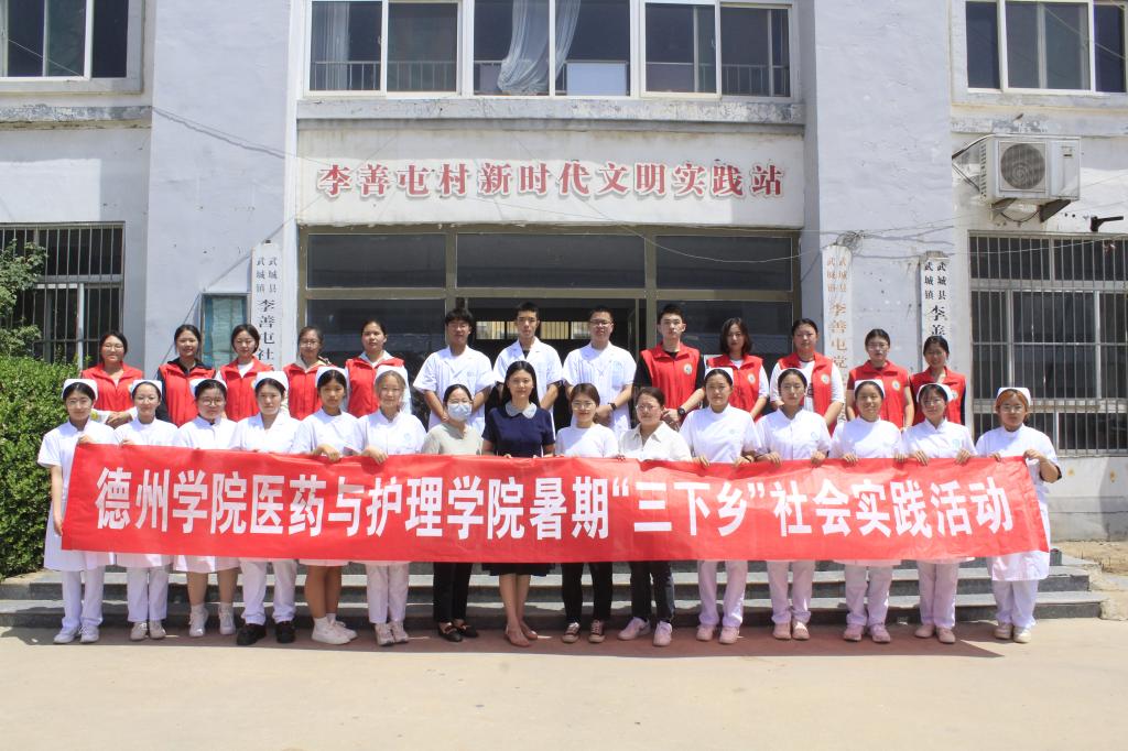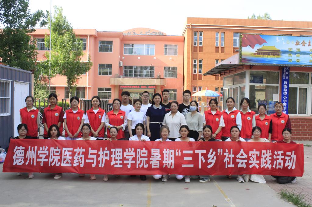 为深入学习贯彻党的二十大精神,学习贯彻习近平总书记关于青年工作的重要思想,积极将“小我融入大我”,引领学生立志做有理想、敢担当、能吃苦、肯奋斗的新时代好青年。2023年7月7日,医药与护理学院结合学院专业实际,由师生党员、南丁格尔志愿者、红十字应急救护志愿者、学生干部等三十余人,组建南丁格尔志愿服务队和“馨星助梦”志愿服务队赴德州市武城县武城镇开展暑期“三下乡”社会实践活动。
