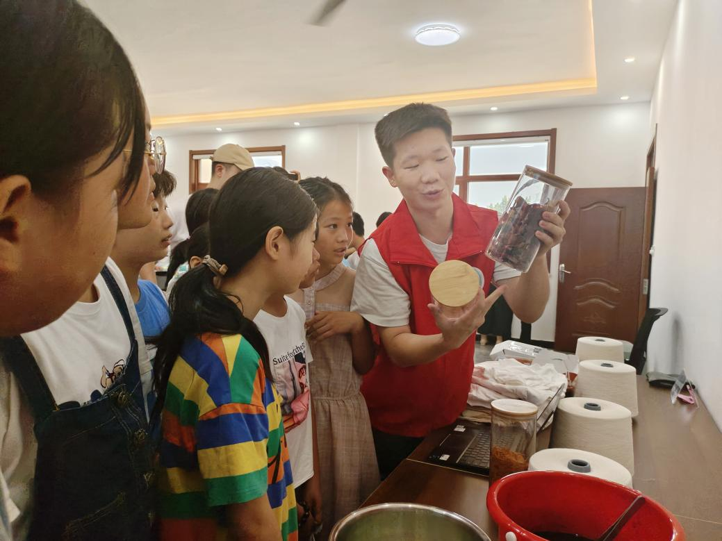 暑期“三下乡”活动开始后,社会实践团学生对企业职工子女开展纺织红色基因理论宣讲以及扎染互动课程,让职工子女看到父母对纺织业有“择一事终一生”的执着专注、“偏毫厘不敢安”的一丝不苟、“千万线成一布”的追求卓越,激发青少年投身纺织业的兴趣,强健纺织业人才“造血能力”。