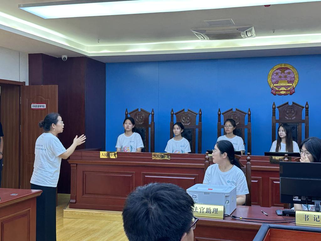 服务团走进齐河县人民法院黄河生态法庭,实地参观了诉讼服务大厅、调解室、互联网审判庭、集约送达中心、文化展厅等区域,详细了解了黄河生态法庭的设立背景、理念职能、模式机制,认真聆听了黄河生态法庭发挥区位优势、创新“一核两翼三保障”助推黄河流域生态保护,构建“一圈两带三层”促进黄河流域高质量发展的相关报告。大家结合黄河流域生态保护方面的刑事、民事诉讼等典型案件,展开了交流学习。同时,师生分别扮演不同的角色,开展环境资源案例的模拟法庭体验。
