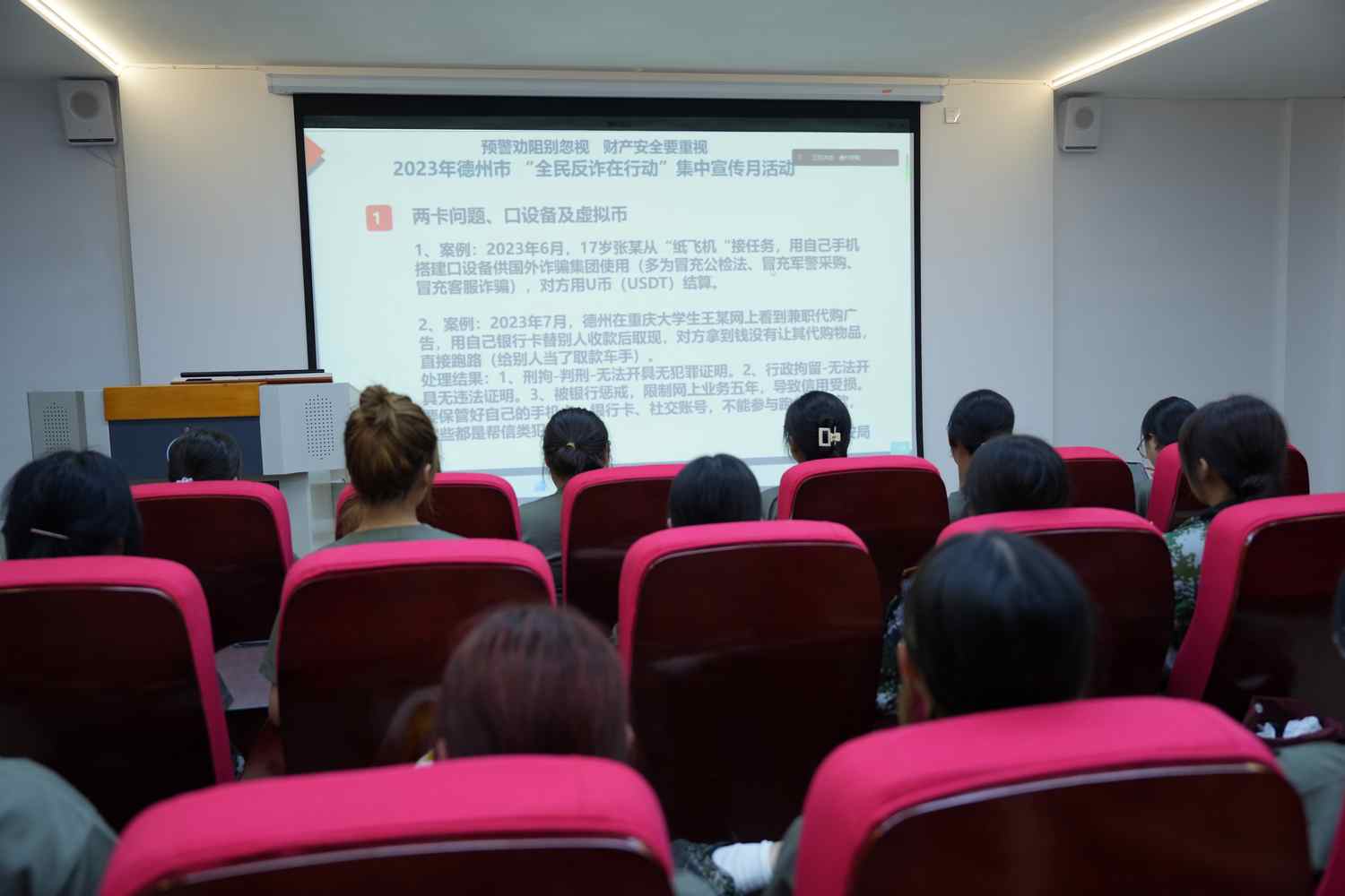 活动在厚德楼411录播室设主会场,各二级学院设50多个分会场,全校5000多名新生参加。有多年反诈经验的娄斌警官,通过对反诈电影《孤注一掷》深度解析,针对大学生易发诈骗案件类型,结合实际案例,系统归纳犯罪分子常用的诈骗方式和手段,细致分析了受害者上当受骗的原因,并仔细讲解各种防范对策及被骗后的补救措施,教育同学们生活中不轻信、不转账、不上当,及时报警处置,更好的保护自己的财产安全。