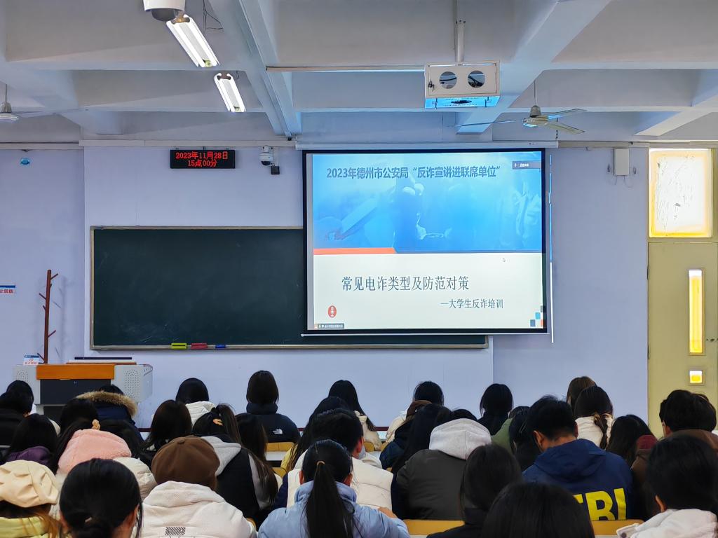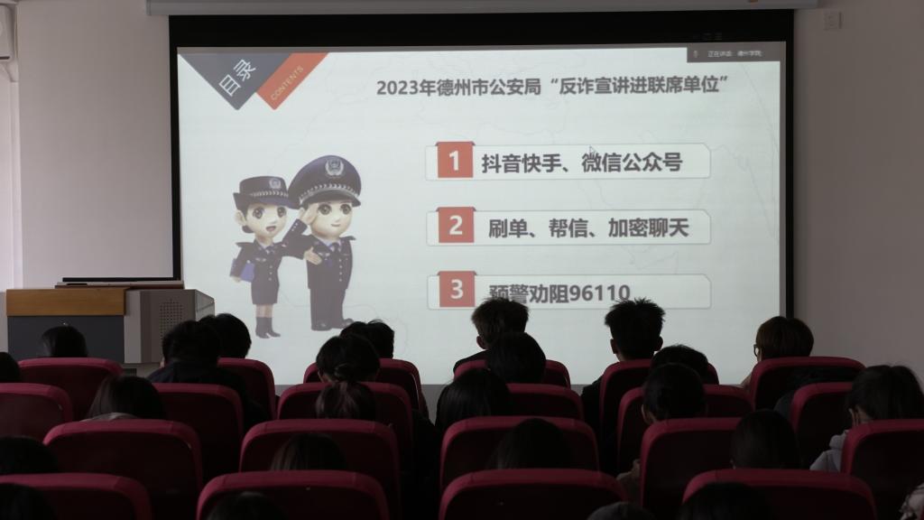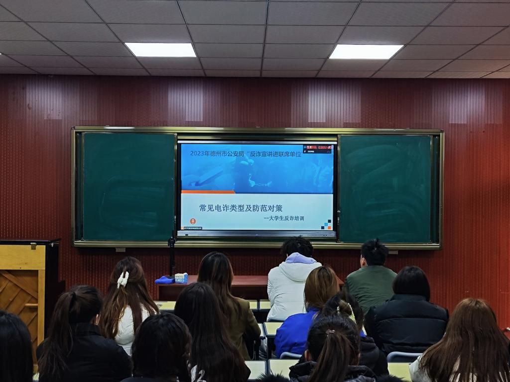 为提高广大学生防范网络电信诈骗的安全意识和自我保护能力,11月28日,邀请德州市公安局德城分局新型犯罪研究作战中心、二级警长娄斌警官来亚博官网做反诈宣传专题报告。