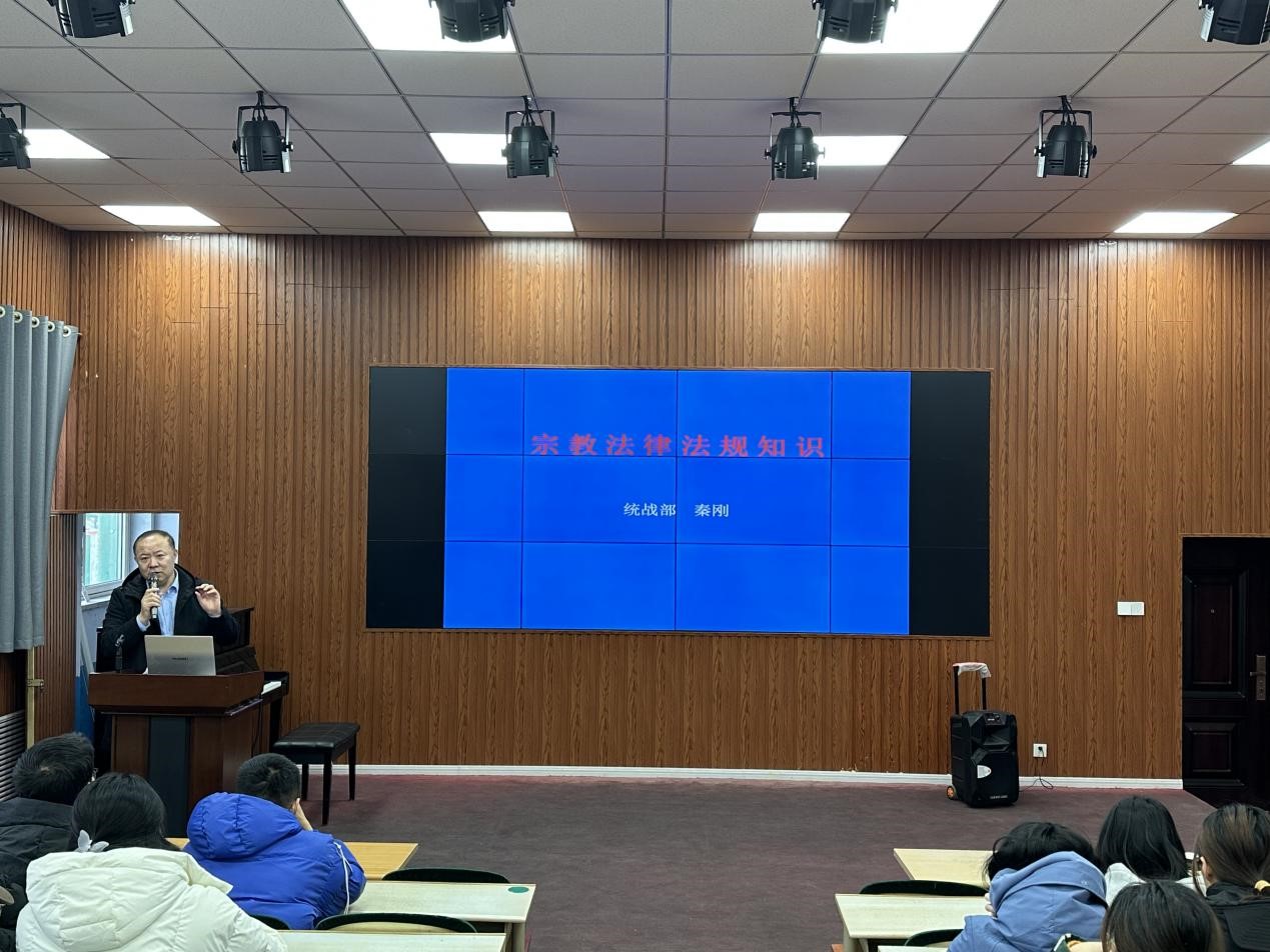 “保护合法” “制法非法”“抵御渗透”“打击犯罪”等原则。秦刚教育引导同学们要正确对待宗教问题,自觉抵制非法宗教的渗透传播,树立科学的世界观、人生观和价值观。现场反响热烈,同学们纷纷表示会自觉遵守党和国家的宗教政策,做坚定的马克思主义者。