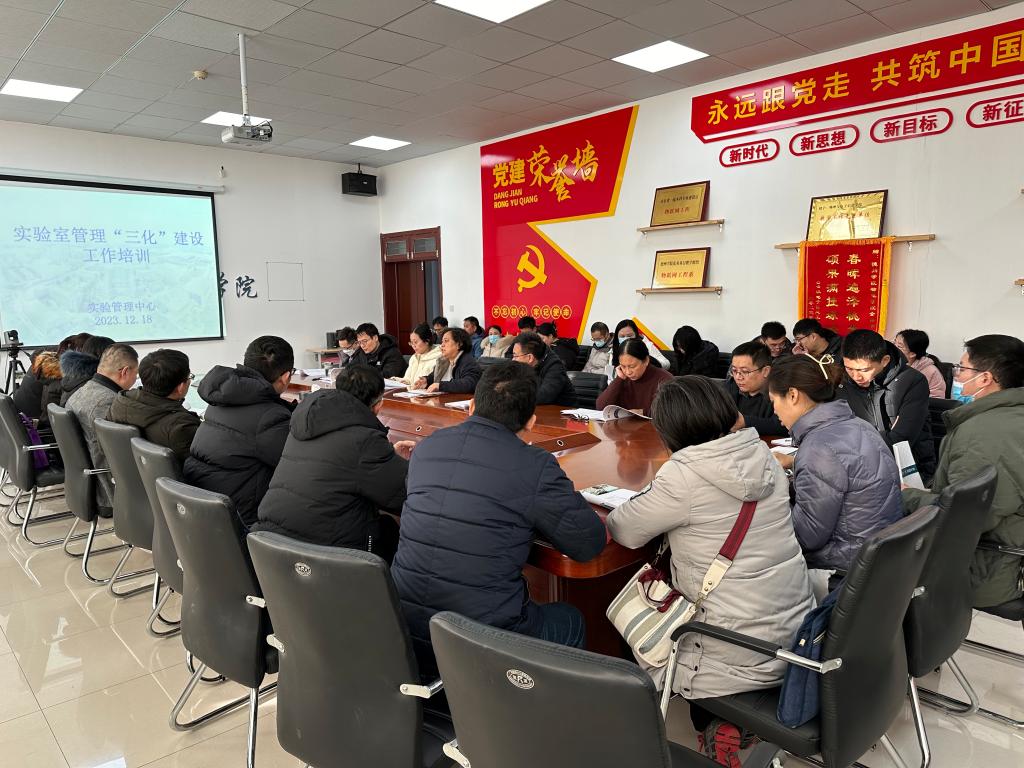 12月18日下午,在启智楼0365会议室召开了实验室管理“三化”建设工作业务培训会。会上,先对实验室管理规章制度、工作流程、档案管理、现场可视化管理、数字化管理等方面进行了培训。随后参会人员到学校公共实训中心、公共科研实验中心等实验室对仪器设备管理、实验室标识、实验室“一码通”管理、仪器设备“一码通”管理等方面进行了现场观摩。