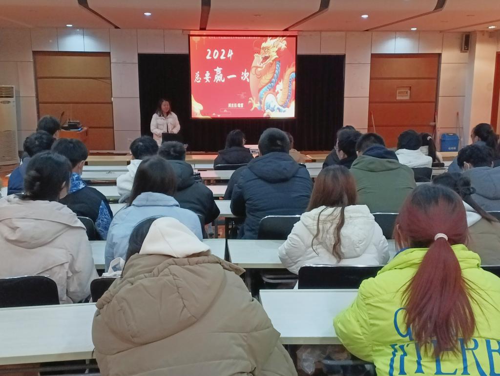 化学化工学院以“2024 总要赢一次”为主题开展活动,通过看图猜“龙”字成语等龙年趣味小游戏品味“赢”的喜悦,通过观看《热辣滚烫》视频片段感悟“赢”的内涵,通过电影解说引导同学们制定2024年目标,描绘“赢”的征途。邀请同学演示乒乓球弹跳实验,感悟勤奋与坚持的魅力。