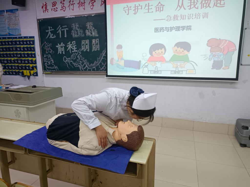 为提高学生安全防范意识,医药与护理学院以“守护生命 从我做起”为主题开展现场急救知识培训,讲解在遇到突发事故时如何第一时间采取正确、有效的应急措施,同时对心肺复苏和海姆立克急救法进行现场示教,用浅显易懂的方式向同学们科普每一个细节。