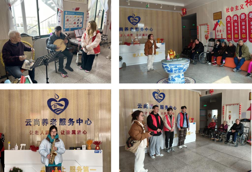 雷锋精神薪火相传,爱心传递温暖人心,为践行雷锋精神,弘扬尊老敬老之风,3月6日下午,音乐学院志愿者们来到云尚养老服务中心,开展志愿服务。活动现场,《我和我的祖国》《传奇》《雪绒花》《阳光路上》等合唱节目轮番出场,每当唱到精彩处,不少老人也跟着哼唱起来;萨克斯独奏《夜上海》,华丽的音色,舞动的旋律,老上海的都市夜仿佛在我们眼前;《我的歌声里》《光年之外》《安和桥》等独唱节目也精彩纷呈,并获得了热烈的掌声。老人们也在现场展示了京剧,志愿者们欢呼鼓掌,现场充满了欢声笑语。活动结束后,志愿者帮忙打扫了卫生,为老人们营造出更加舒适、安全的生活环境。
