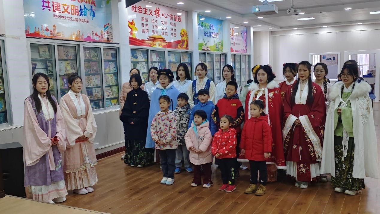 纺织服装学院“织梦未来”志愿者服务队、子衿汉服社、德州市图书馆工作人员及多对亲子家庭参加活动。