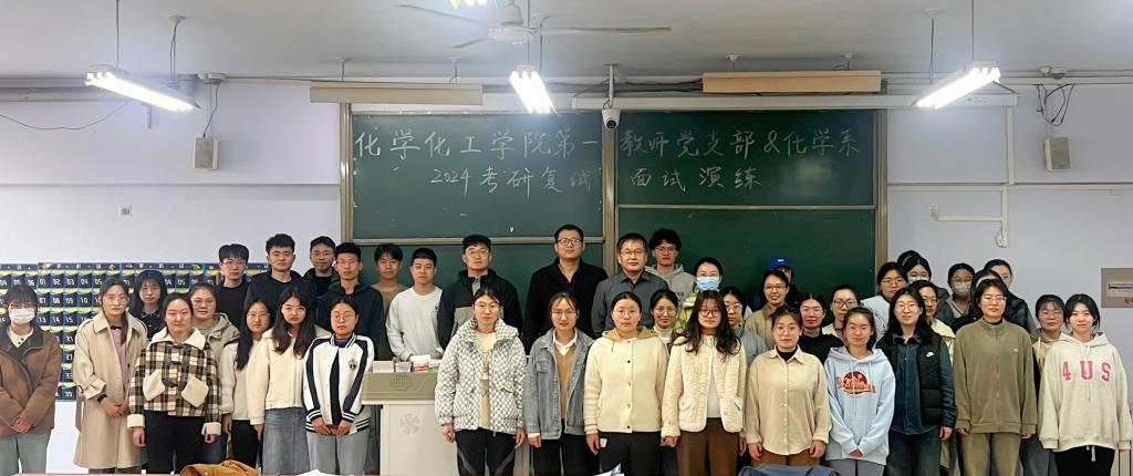 2024年化学化工学院化学专业考研上线率再创佳绩,达到51%,为了提高复试成功率,化学化工学院第一教师党支部(第三批全国党建工作样板支部培育创建单位)和贾春晓书记工作室(第二批全省高校“双带头人”教师党支部书记工作室培育创建单位),提前筹划、精心组织,从2月28日考研分数公布至今,组织了一系列活动助力学生考研复试。