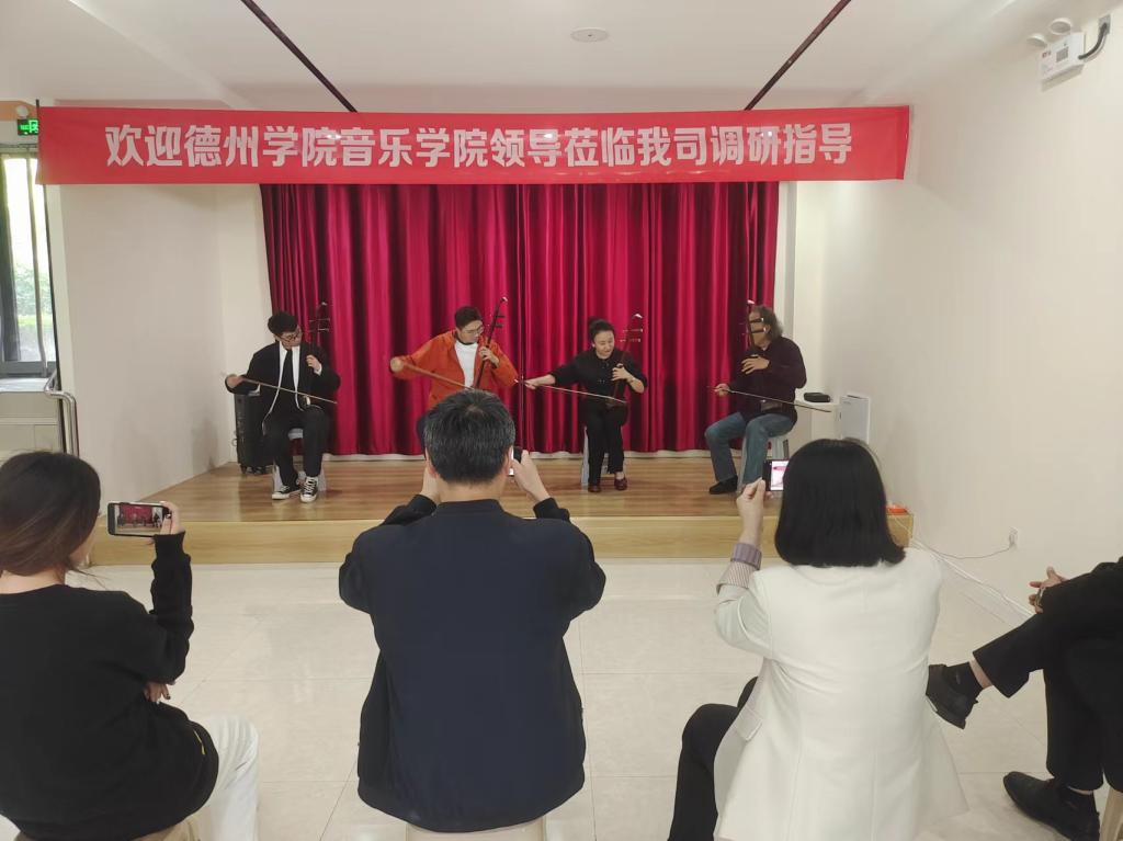企业负责人李玥君对音乐学院一行人员的到访表示欢迎。双方围绕就业基地建设、传统乐器二胡人才的培养、民族文化的传承以及毕业生就业优选等方面进行座谈。随后,共同参观校区建设、聆听企业发展愿景,观看毕业生代表、双方教师代表、联合曲艺演奏等技能展示。