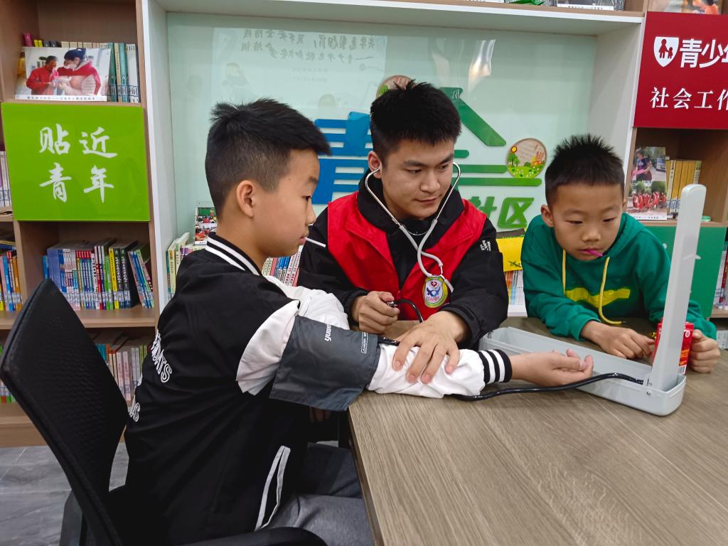 志愿者通过ppt与视频的形式,向青少年详细讲解了网络安全、日常生活、心理健康等安全教育实践与推广,并讲解如何预防及避免安全问题的发生,引导青少年提高安全意识。随后,志愿者对海姆立克急救法和血压计使用方法进行现场操作示范,讲解在遇到突发状况时如何第一时间采取正确、有效的应急措施,用浅显易懂的方式科普每一个细节。青少年学习热情高涨、积极参与练习,纷纷表示培训活动切实提高了自己健康急救意识和水平。