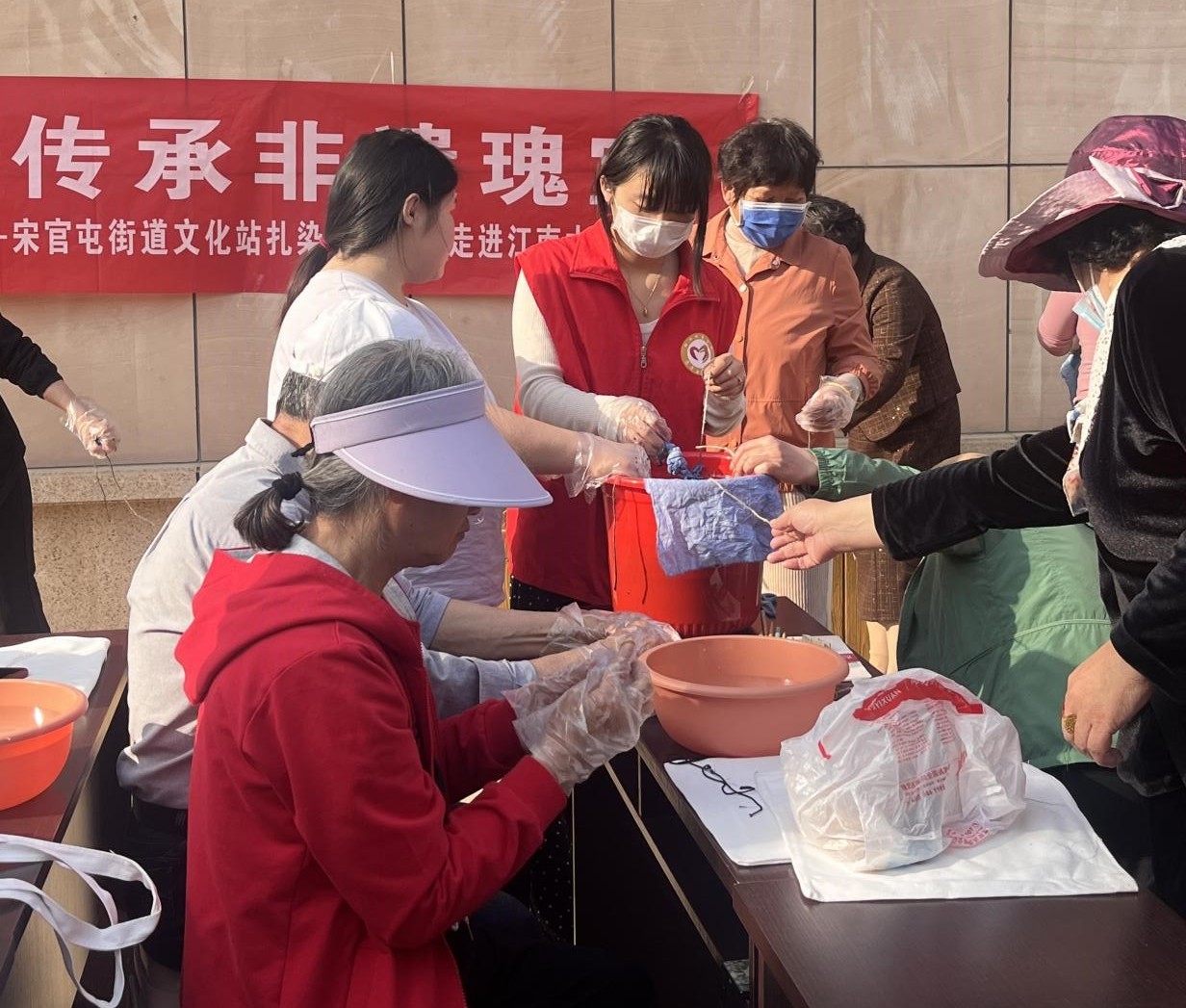 为进一步推动“百万大学生进社区”工作走深走实,引导大学生在社会实践中弘扬中华优秀传统文化、发扬志愿服务精神、发挥专业特色优势,同时丰富社区居民的业余文化生活,近日,纺织服装学院志愿服务队分别赴嘉诚社区、江南水郡社区、刘集社区开展“非遗传承,魅力扎染”志愿活动。