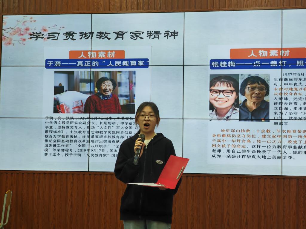 为贯彻落实习近平总书记关于教育家精神的重要论述,激发同学们对教师职业的热情,提升教育教学质量,教师教育学院于4月25日在知行楼113教室开展“我的教师梦”主题演讲比赛活动。
