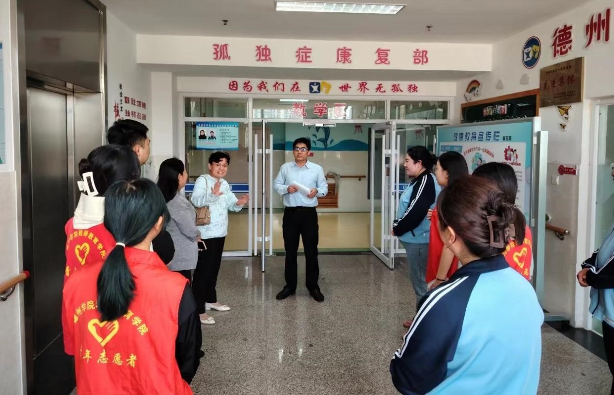 为关心关爱自闭症儿童,传递社会正能量,培养大学生的爱心、耐心及社会责任感,打造常态化的志愿服务特色项目,教师教育学院于5月7日到德州市新语特教学校参观交流,并开展“拥抱星星的孩子”志愿服务活动。德州市新语特教学校校长李国俊、德州市团委少青部部长李彦峰参加了活动。