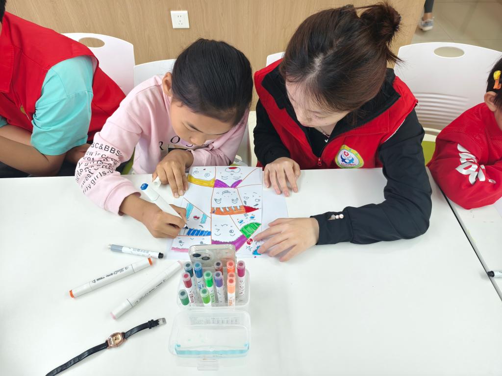 本次活动志愿者为青少年准备了“与心灵相约,与健康同行”心理健康宣讲、“表情大拼盘”创意绘画、“我的梦想我做主”理想分享三个项目。首先,志愿者重点围绕“我的情绪压力怎样”“情绪压力对我们的影响”以及“如何缓解释放压力”等关键内容开展宣讲,让青少年了解情绪压力对学习生活带来的影响,并掌握一系列缓解释放压力的有效方法,让孩子们在面对压力时能够更好地应对和调整自己。随后,志愿者通过绘画的方式传递和调节情绪,进一步帮助青少年缓减压力,提升专注力,让青少年用积极的想法和创意作品去释放积压的情绪,感受生命的多彩,热爱生命中的美好。最后,志愿者引导青少年通过听歌识曲猜片名的游戏,说出心目中最喜欢的动画角色以及想要成为什么样的人,并告诉他们梦想的起点就是现在,好好学习、努力奋斗就会离心中的梦想越来越近。
