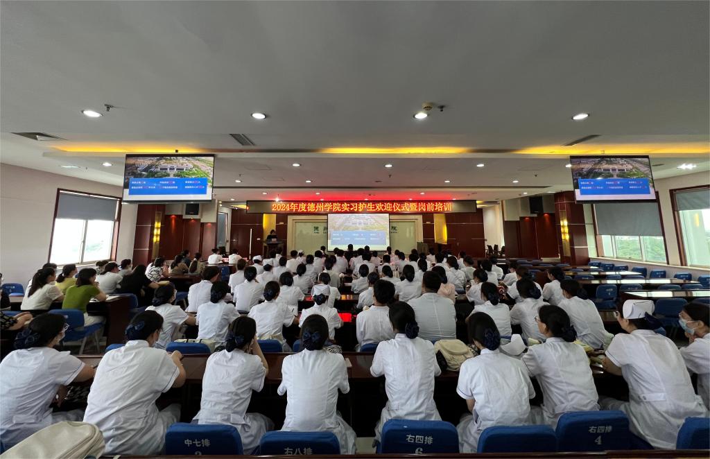 根据《护理本科教学质量国家标准》要求,为贯彻护理专业人才培养目标,健全知识体系,强化实践能力,拓展学生视野,医药与护理学院2021级护理学本科实习生共149名,赴德州市第二人民医院参加为期2周的精神科护理学实习,这也是护理学专业学生首次进行精神卫生临床护理实习。6月7日上午,两名专业教师陪同第一批70名学生到达实习地点,参加医院举行的2024年度护理实习生欢迎仪式暨岗前培训,并开展实习。