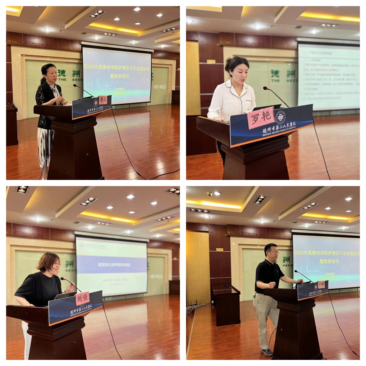 德州市第二人民医院副院长穆焱成、护理部主任鲁春、副主任刘佳等出席欢迎仪式并发言,就医院的基本建设及发展、精神科学科及护理团队建设、精神科病房设置及相关管理进行了详细介绍,并指出临床的实践是对理论学习阶段的巩固与加强,也是对护理技能操作的培养和锻炼,同时也是岗前的最佳训练。明确护生在院期间应遵守的各项规章制度,使实习生对实习期间的任务及要求有了清晰的认识。医药与护理学院专业教师发言,希望同学们在实习过程中严格要求自己,遵守医院、社区的规章制度,认真学习,虚心请教,在实践中检验真理。