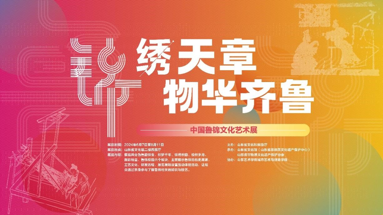 本次展览将集中展示鲁锦的历史渊源、工艺文化、研发历程。本次展览突出鲁锦这一主题,通过“鲁韵锦生”“织梦千年”“锦绣织韵”“梭织岁月”“颜彩纷呈”“鲁锦纹韵”六个板块集中展示了鲁锦的历史脉络、织造技艺、研发历程。让观众通过图文并茂的方式进一步了解与鲁锦的文化内涵。依托鲁锦项目,山东开展了“齐鲁文化基因解码利用工程”(非遗)试点工作。本次展览是试点工作成果的集中体现。