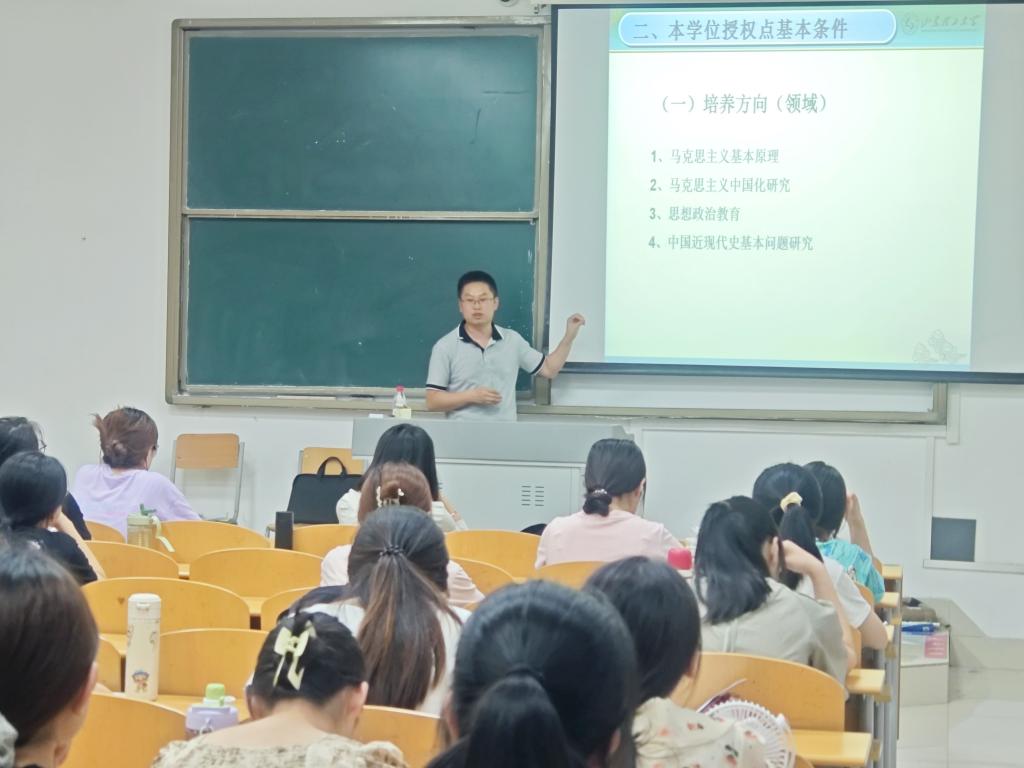 山东理工大学马克思主义学院教学科研办公室主任、副教授张永伟还为学生做了考研招生宣传,从专业发展、办学条件、人才培养以及近3年招生人数、分数线等方面做了详细介绍。21级和22级学生现场听取了考研招生宣传,学生纷纷表示加深了对考研专业的认知,对自身考研目标的确定以及未来发展具有很强的参考作用。