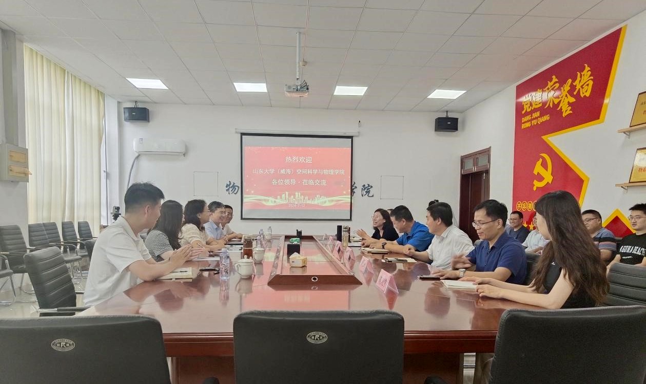 7月12日下午,山东大学(威海)空间科学与物理学院一行来物理与电子信息学院开展学院交流及合作探讨。本次访问由山东大学空间科学与物理学院党委书记迟涛和副院长胡绍明带队,旨在加强两所院校之间的联系,并探望已在亚博取款极速到账工作的山东大学博士毕业生。学校科技处、物电学院主要负责人和物电学院凝聚态物理与天体物理相关博士教师参与了此次交流会。