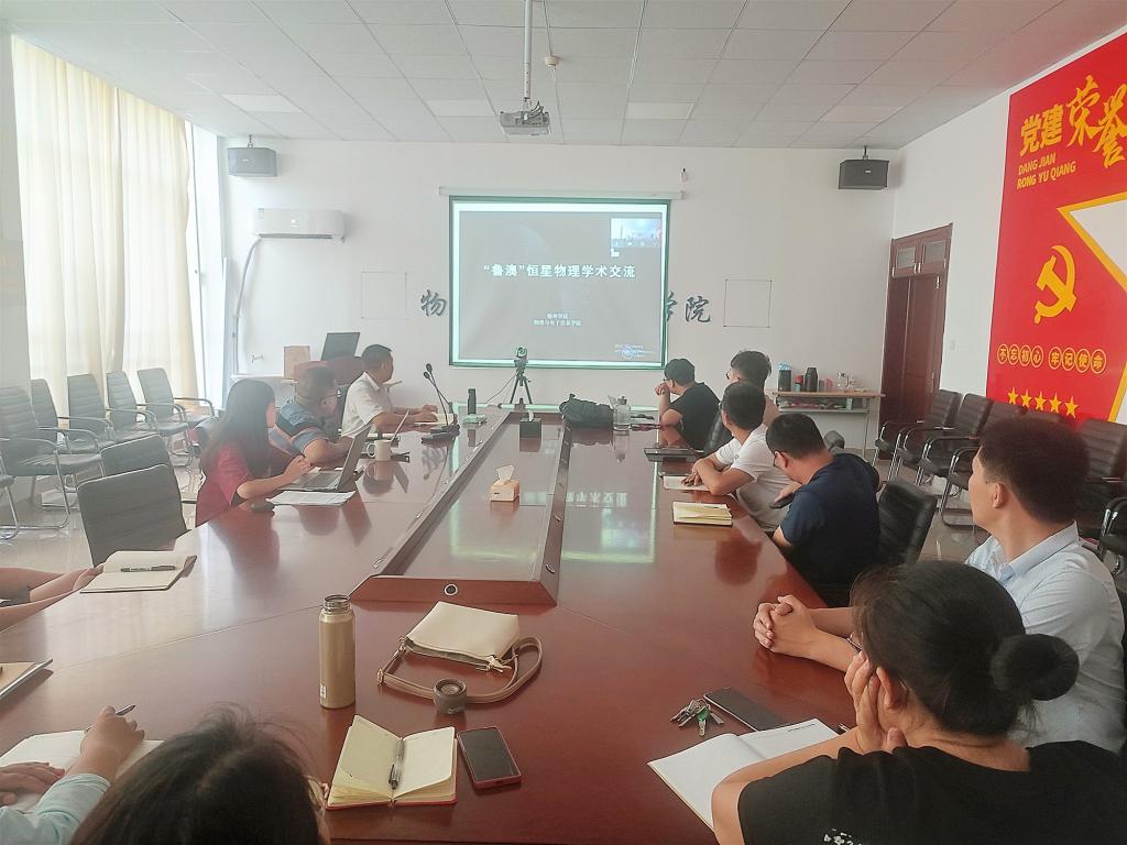会议上,澳门科技大学蔡涛助理教授介绍了他在恒星物理研究领域中“旋转恒星中波的传播”方面的最新成果,物电学院负责人汇报了亚博取款极速到账在恒星物理与星震学方面十五年来的研究进展,以及天体物理创新团队的组建、发展、规划等情况。特邀专家云南天文台的李焱研究员介绍了星震学研究的重要意义与未来重点研究方向,并对亚博官网天体物理研究团队的未来发展给予了肯定和期待。参会人员均表示,双方在研究领域上有着很强的互补性与合作空间,希望通过本次学术交流会,加强双方的了解和联系,在科研人员互访交流、科研资源共享、联合项目申报等方面逐步开展实际合作,为推动鲁澳教育交流合作贡献力量。